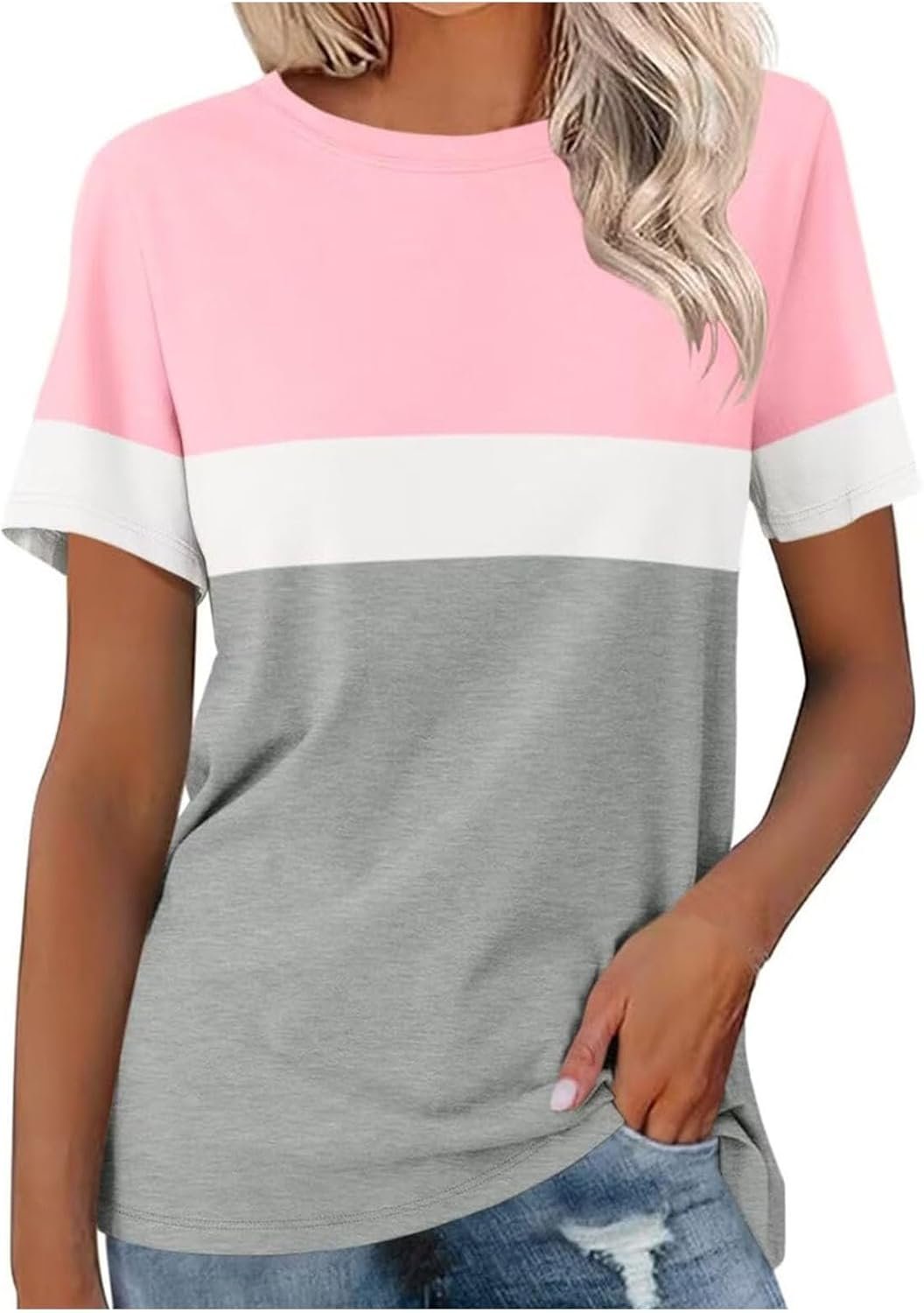 T Shirts for Women Summer Short Sleeve Tops Fashion Floral Printed Blouse Womens Casual Crewneck Pullover Shirt