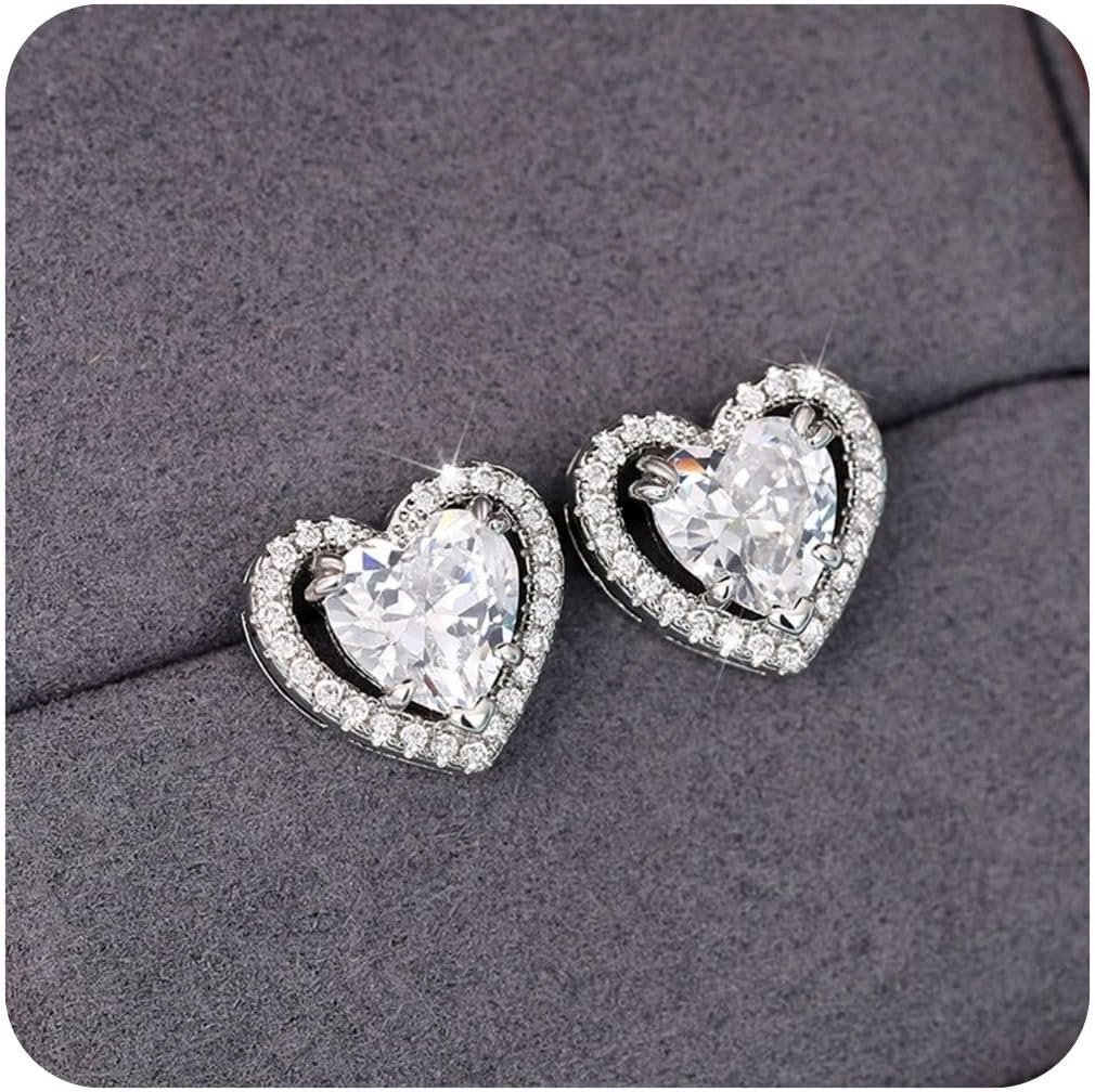 Diamond Stud Earrings for Women,Cute Heart Hypoallergenic Stud Earrings with Cubic Zirconia Trendy Birthday Gifts