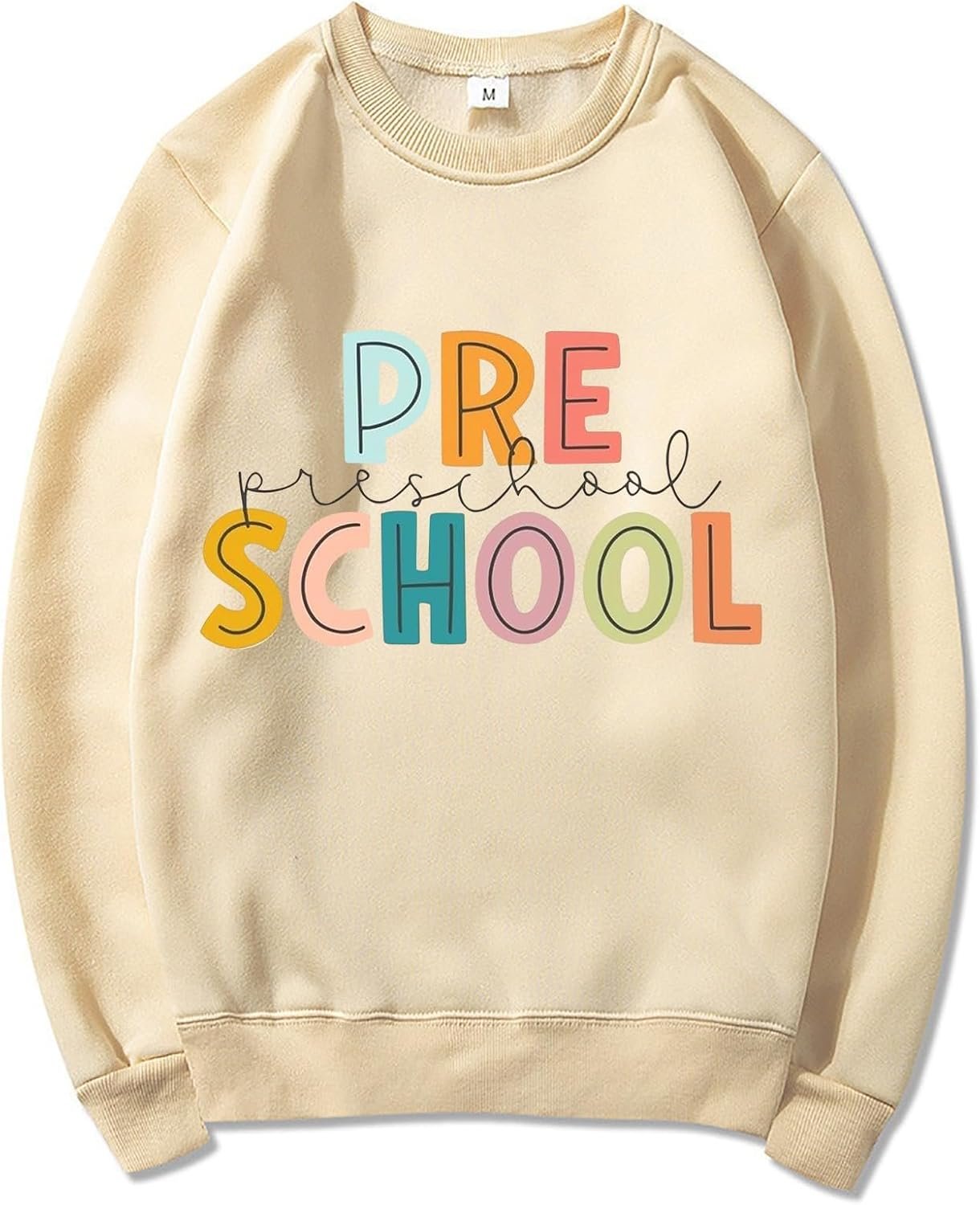 Teacher Sweatshirts for Women Back to School Clothes Graphic Long Sleeve Crewneck Shirt First Day Fall Grade Outfits