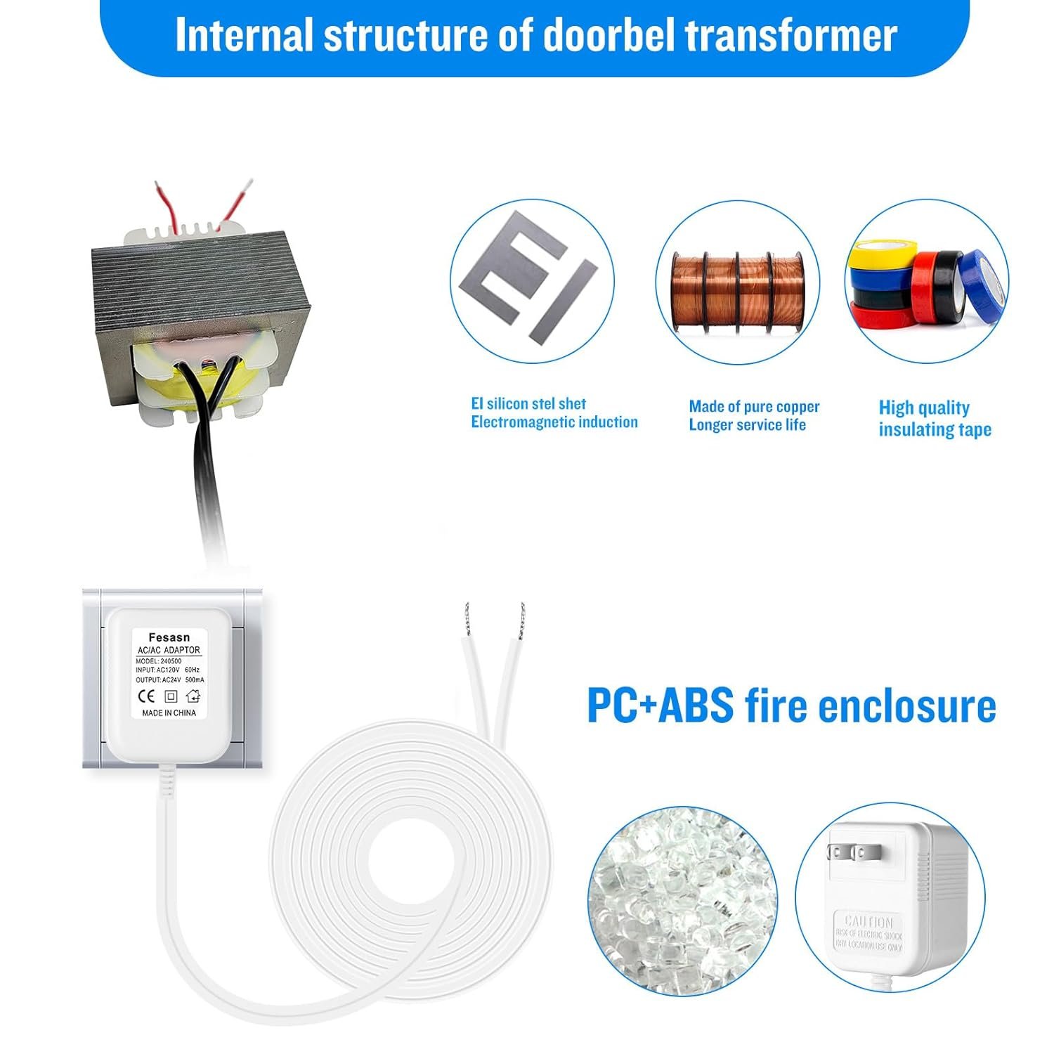 Fesasn has a team of professionals who have been focusing on the design and manufacture of transformers for many years, constantly improving the technology to meet the needs of consumers. Our team has developed a new and upgraded design that completely solves the problem of noise and heat generated during use, and the AC24V stable output makes your visual doorbell work perfectly. With this doorbell adapter, you can charge the doorbell continuously without worrying about the doorbell product working interruption, which makes it an excellent special transformer for Ring doorbells. You don’t need to remove the battery inside the doorbell, just connect this transformer and charge the doorbell at any time, which is what we want it to do for you