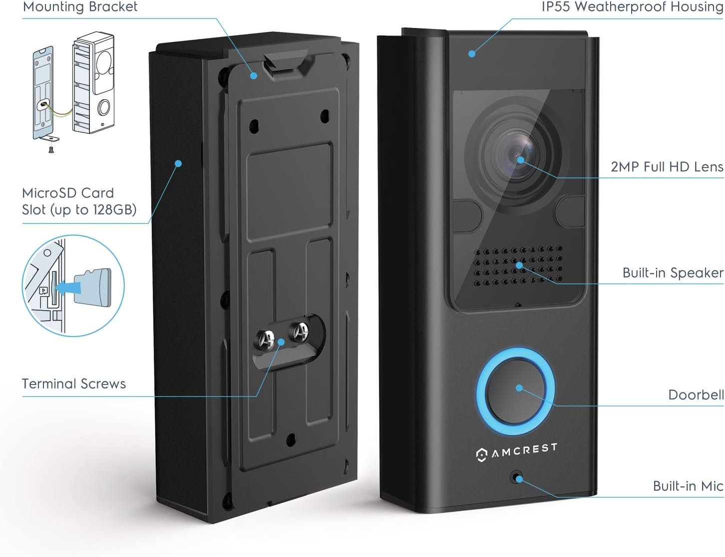 3 reviews for Amcrest 1080P Video Doorbell Camera Pro, Outdoor Smart Home 2.4GHz WiFi Doorbell Camera (Wired Power), MicroSD Card, PIR Motion Detect, RTSP, IP55 Weatherproof, 2-Way Audio, 140º Wide-Angle AD110-SH