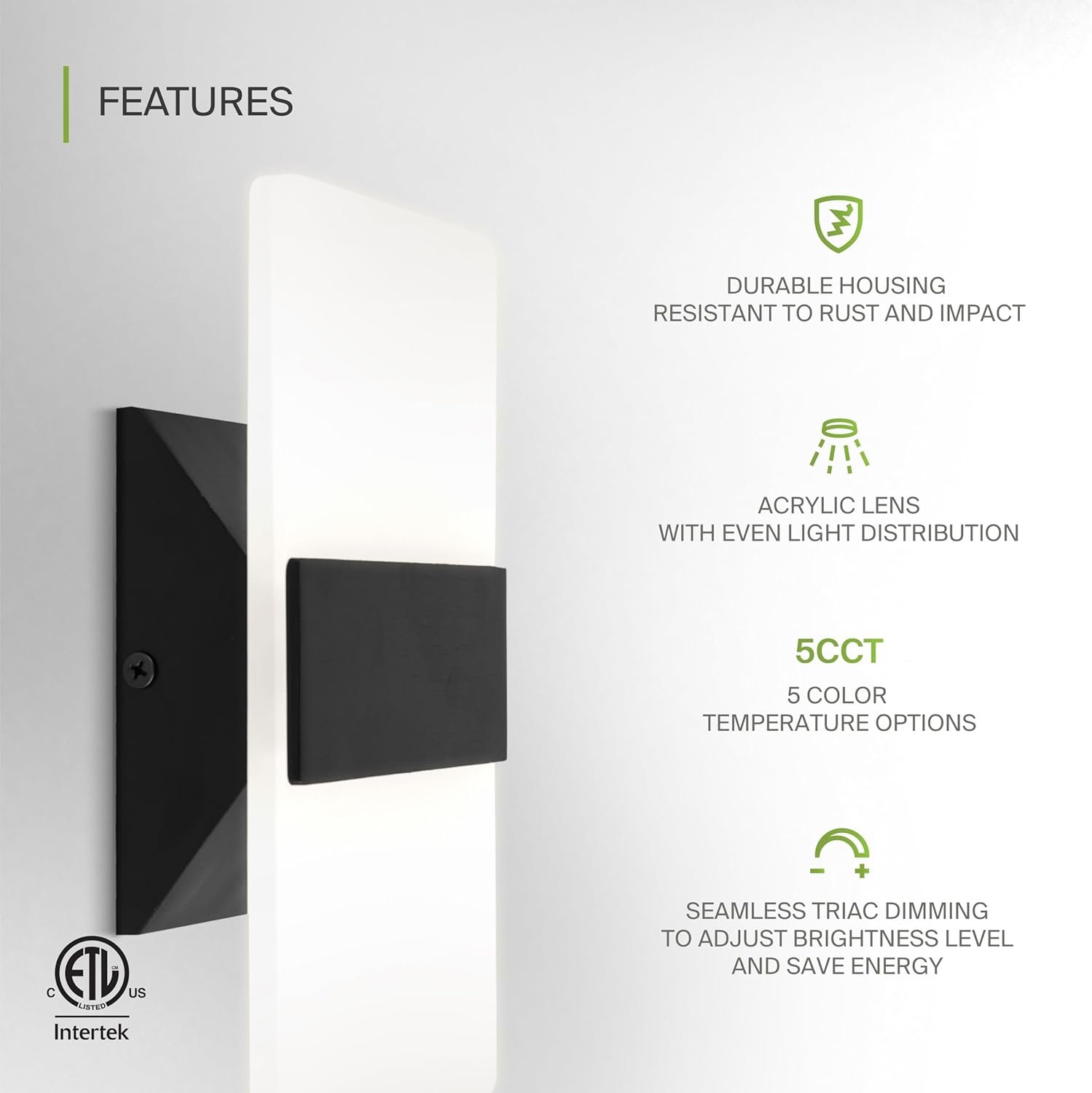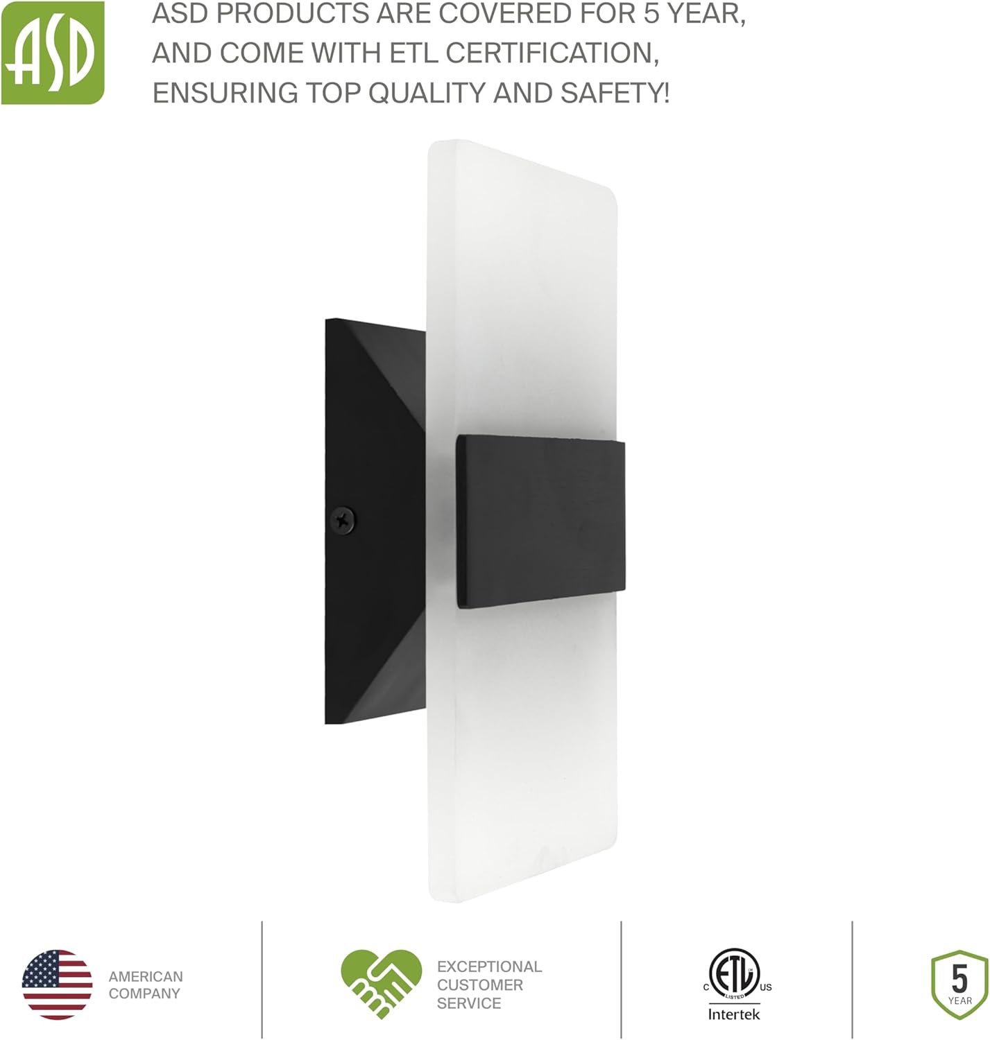 MODERN DESIGN: ASD Indoor LED Wall Sconce combines stylish multipurpose design with efficient lighting. Durable housing resistant to rust and impact allows many years of service. Acrylic lens with 215° beam angle provides perfectly even light distribution.