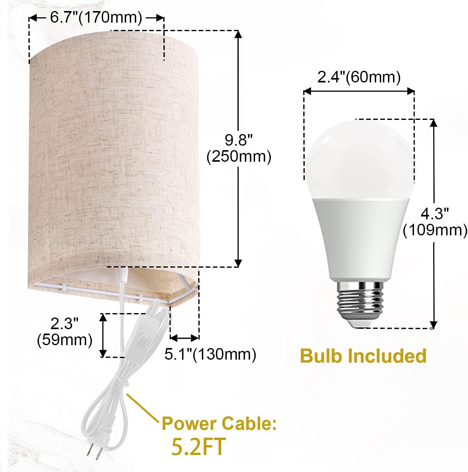 Plug in wall sconces, wall sconces set of two, uses 8W LED A19 bulb, E26 base, and emits 810 lumens of brightness.