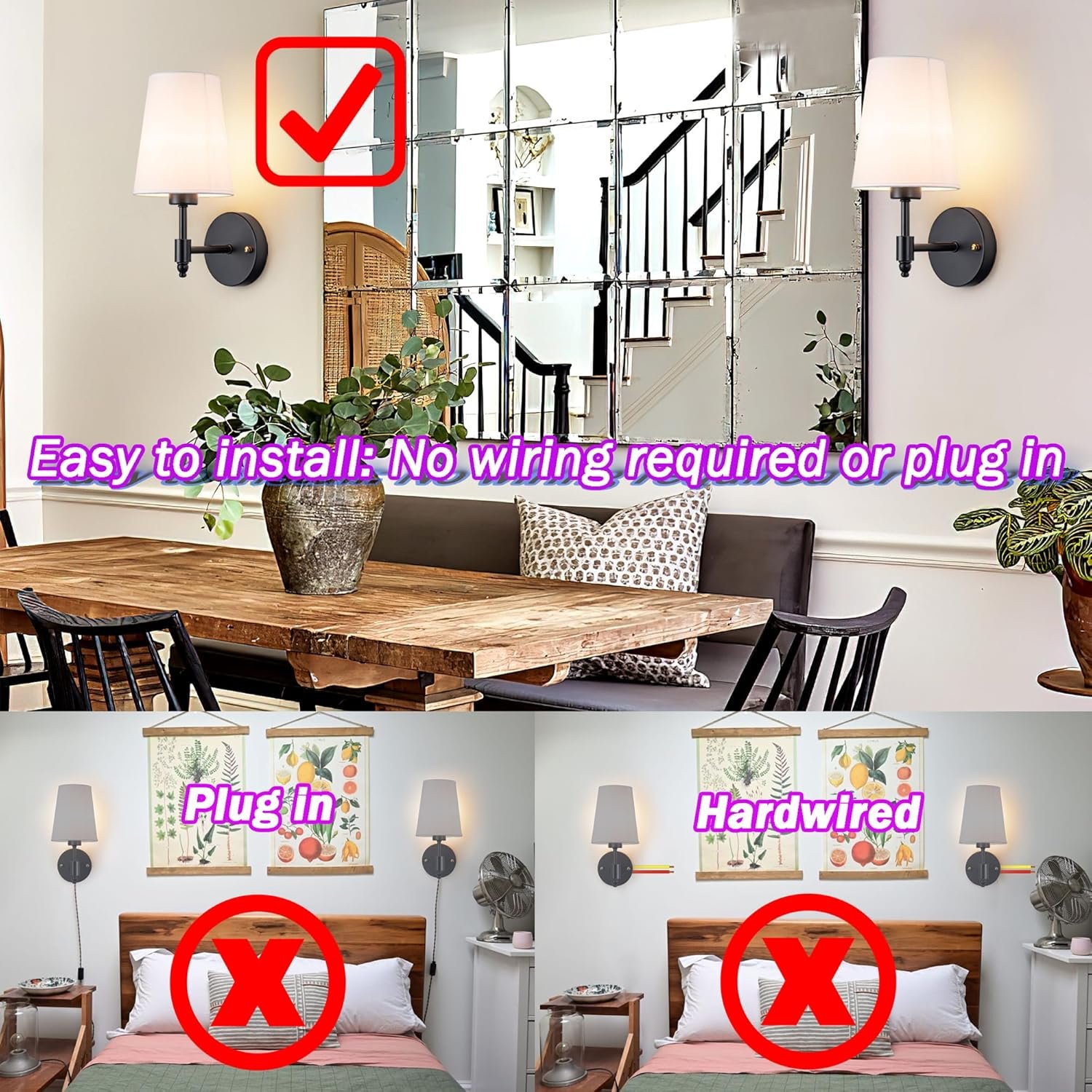 Battery Sconces Wall Decor Set Of 2 Easy Installation & Operation Wireless, non-hardwired wall lights with fast assembly. No electrician needed, perfect for DIY lovers. Battery operated wall sconce with remote control, ideal for areas without outlets.