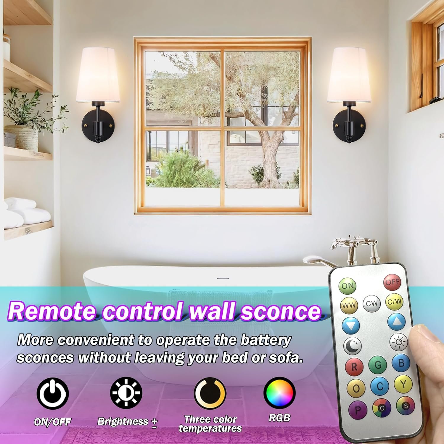 Sconces Wall Lighting Battery Operated Convenient Dual Control: Wireless sconces set of 2 with dual control options. Touch lamp for on/off, color temperature, and brightness adjustments. Also, control with included remote within a 16ft/5m range, making it easy to operate from bed or sofa.