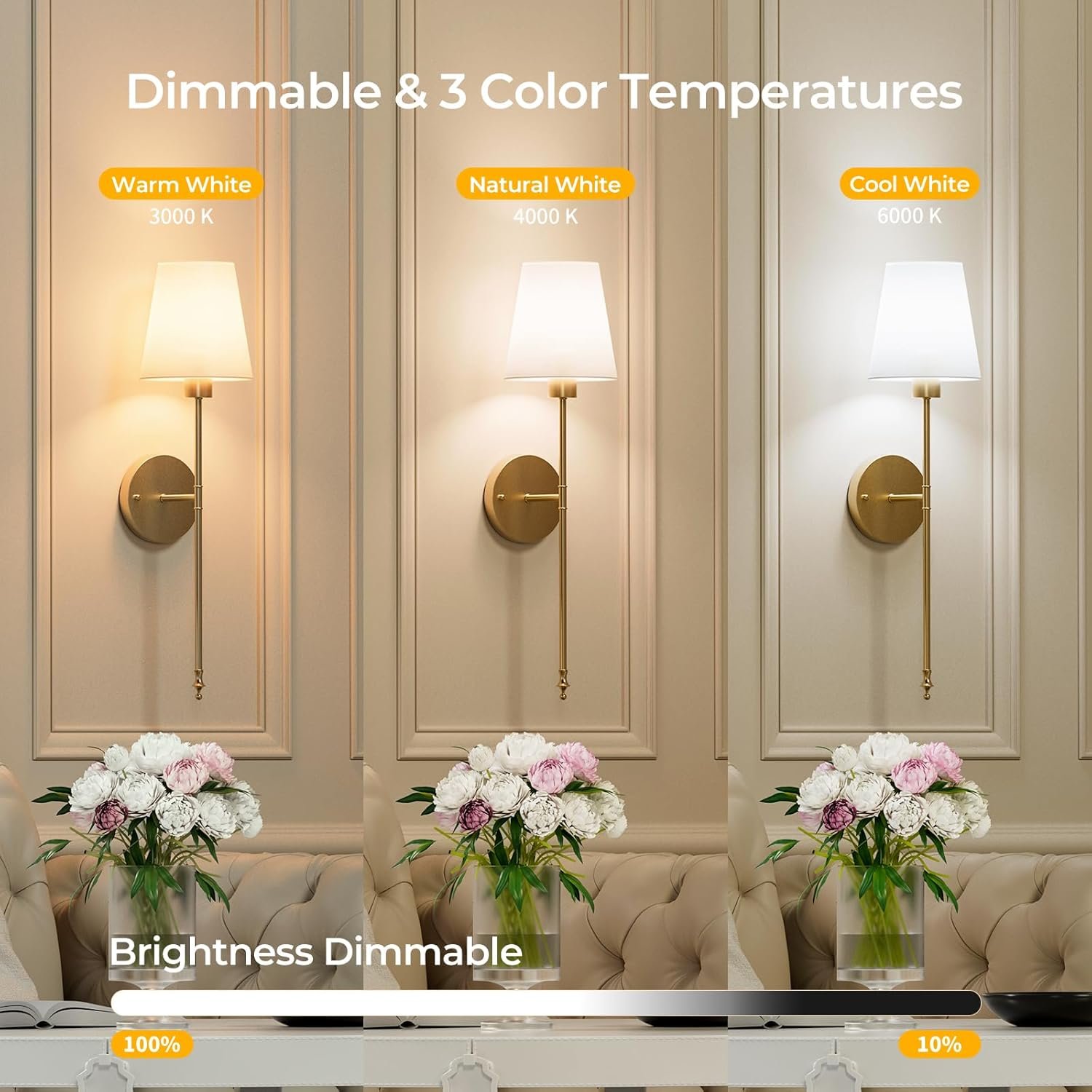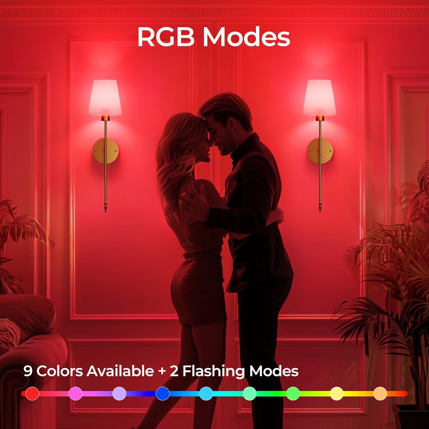 【 3 Color Temperatures + 9 RGB Colors 】- These battery operated wall lights offer 3 color temperatures (Warm White, Natural White, Cool White) to suit your lighting needs, from relaxing to work-friendly environments. In addition, they feature 9 RGB colors, allowing you to choose vibrant colors for any festive occasion or create a mood-setting atmosphere. These wall sconces offer ultimate customization for any room or special event, perfect for home decor or holiday celebrations