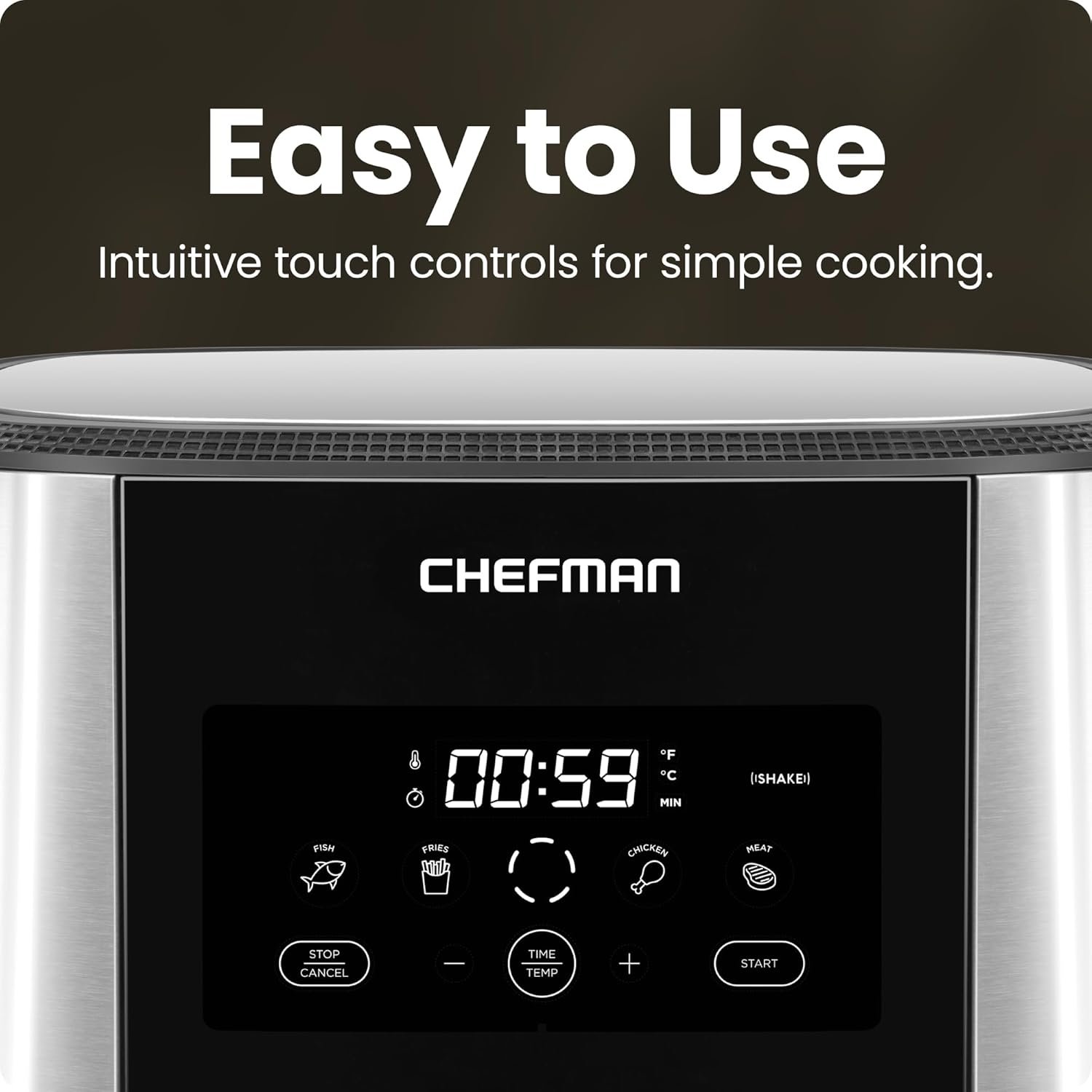 Chefman TurboFry® Touch Air Fryer, XL 8-Qt Family Size, One-Touch Digital Control Presets, French Fries, Chicken, Meat, Fish, Nonstick Dishwasher-Safe Parts, Automatic Shutoff, Stainless Steel