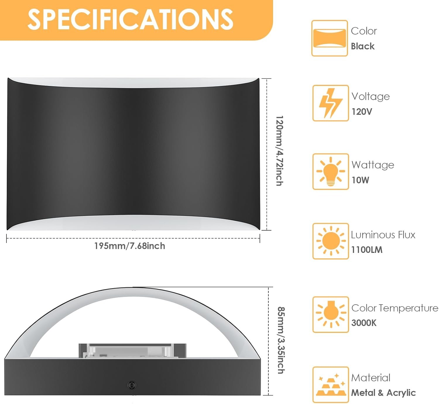 The wall lamp features energy-saving 10W 3000K LED chips, and delivers stable and flicker-free illumination, ensuring both efficiency and reliability.