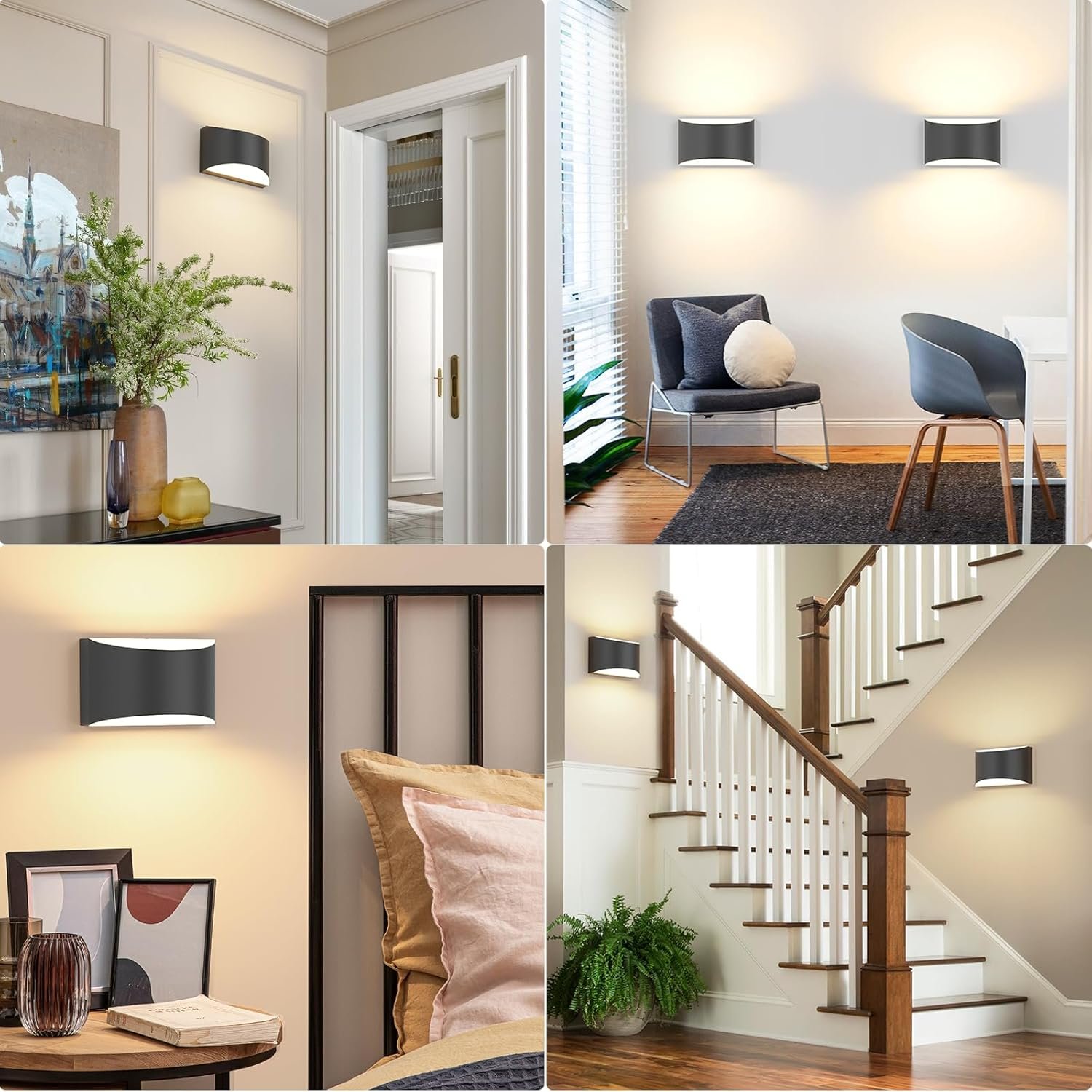 8 reviews for FOLKSMATE Modern LED Wall Sconces, 3000K Warm White Hardwired Wall Lights Set of 2, 10W Up and Down Wall Mount Light, Matte Black Indoor Sconces Wall Lighting