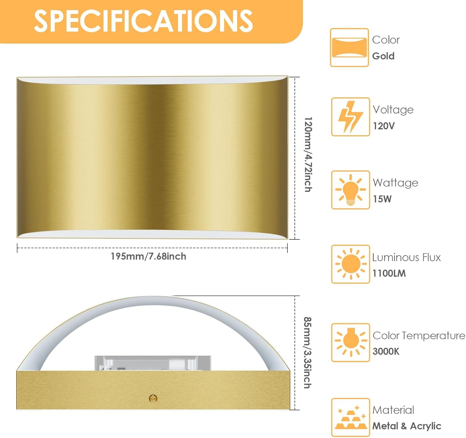Modern Design & Minimalist Style: The LED wall light encapsulates modern sophistication with its cutting-edge design and minimalist style. With clean lines and a sleek gold finish, the wall scones seamlessly integrate into modern living spaces, adding a touch of chic simplicity. The minimalist style and thoughtfully curated design details contribute to the overall ambiance, making them a standout choice for those seeking a balance of modernity and understated elegance in their home decor.