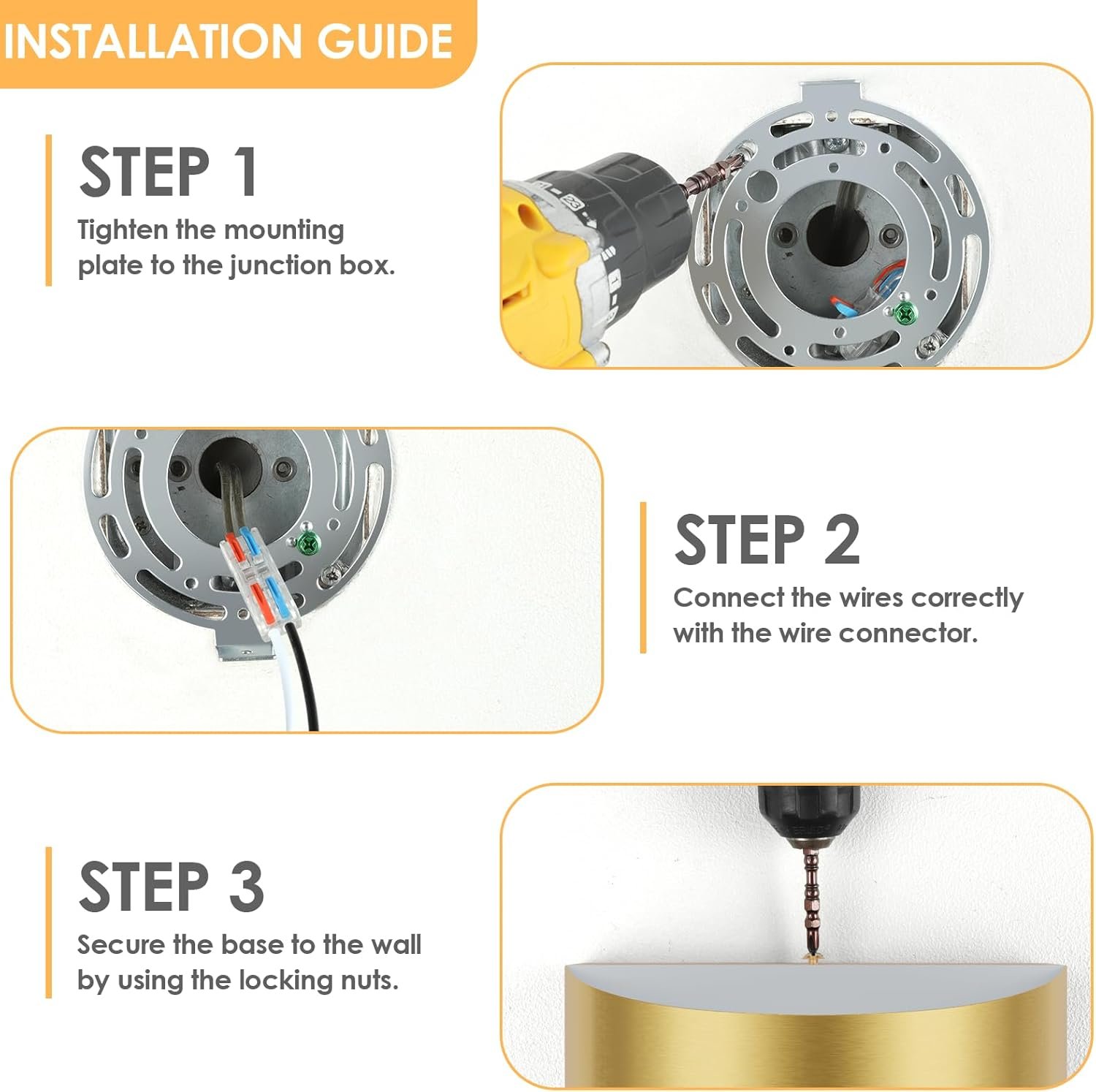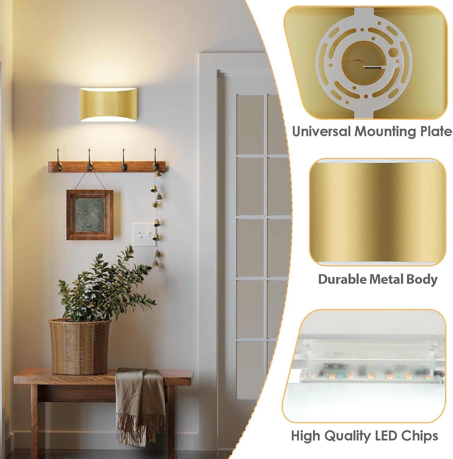 Energy Saving & Eye Protection: The gold wall sconce maximizes illumination efficiency with energy-saving technology, emitting warm white 3000K light at 10W for 1100 lumens. Engineered to eliminate flickering, glare, and buzzing, the wall mounted lamp offers a visually comforting experience, reducing eye strain. This wall sconces set of two achieves a perfect balance between sustainability and eye-friendly illumination for your living spaces.