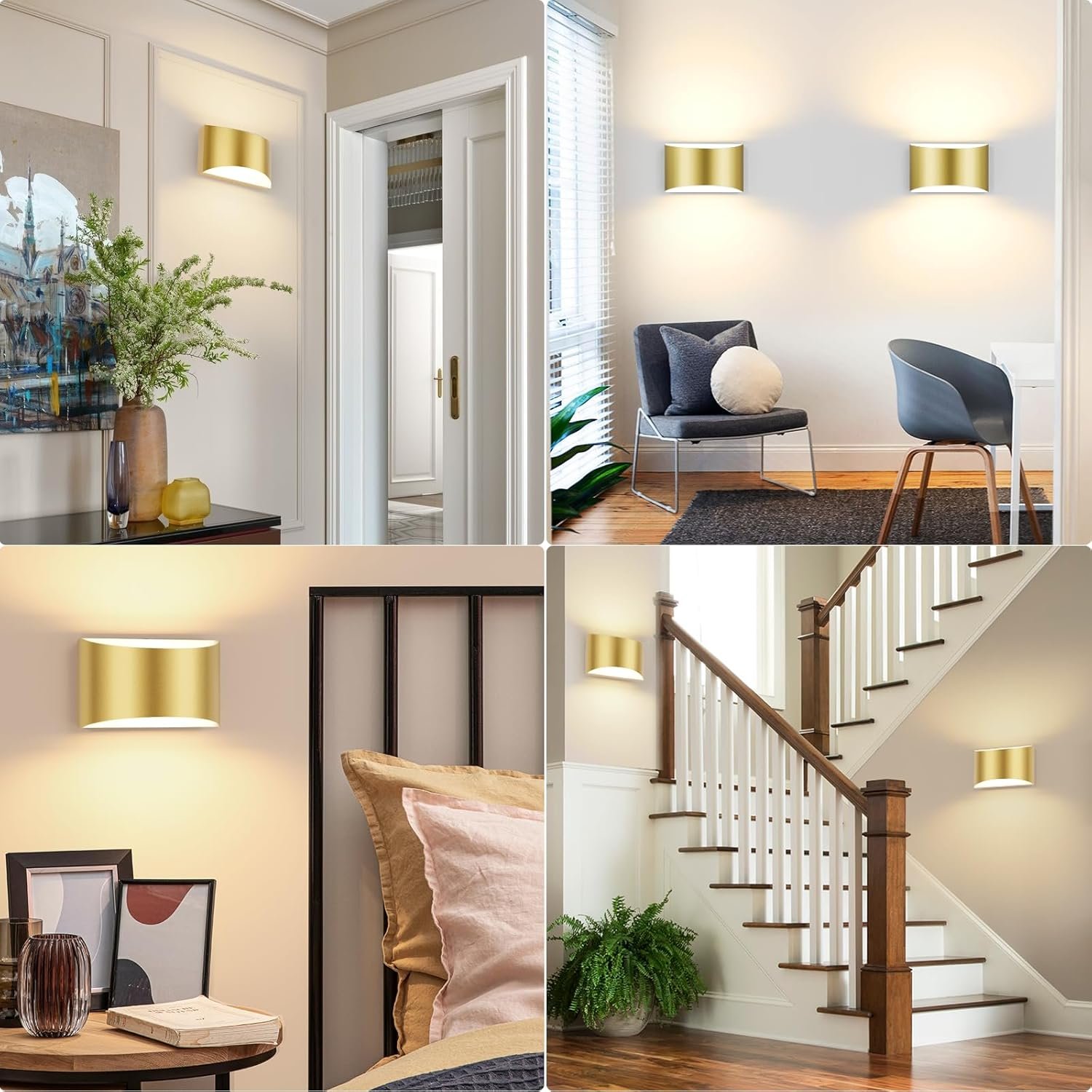 8 reviews for FOLKSMATE Modern LED Wall Sconces Set of 2, 3000K Warm White Up and Down Mount Light, Gold Hardwired Interior Wall Lights Lamp for Indoor Living Room Bedroom Hallway Basement Stairway