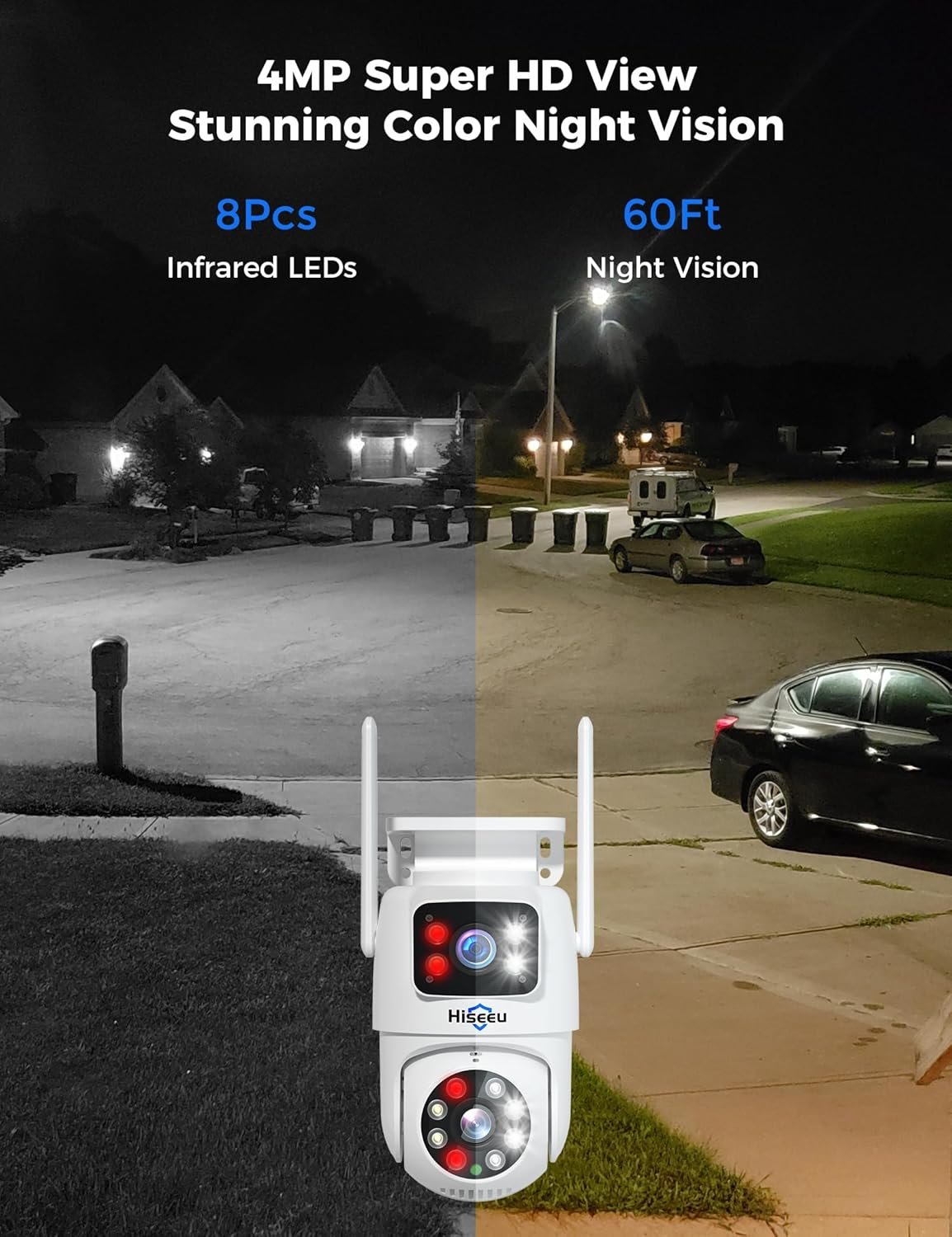 Easy to install & power on and use: Easy to install, the setting step is easy to understand. Even beginners can set it up easily. Sharing to your family and App reomtely view and check.This 3MP dual lens security camera provides the best product experience for home and office.