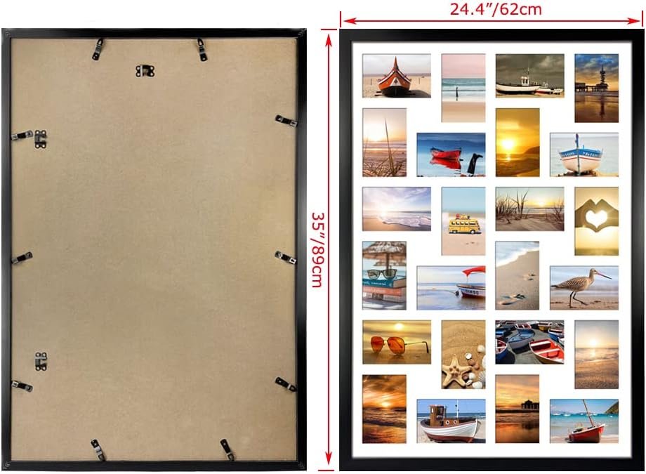 COLLAGE FRAME WITH 24 OPENINGS: You can display 24 piece 4×6 pictures, photos, or artworks in one frame, keeping and showing your memorable moments(There are protective films on the both side of front cover, please tear off it manually before use).