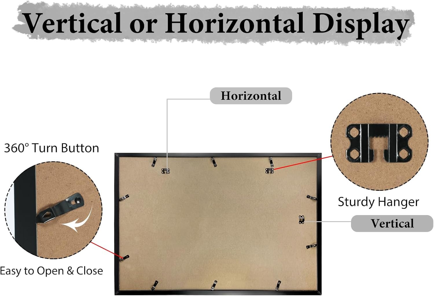 TWO WAYS DISPLAY: Wall collage frames come with the pre-mounted hardware, you can hang the multiple frame horizontally or vertically as you want. Photos can be easily added or changed with the turning button present at the rear end of the frame.