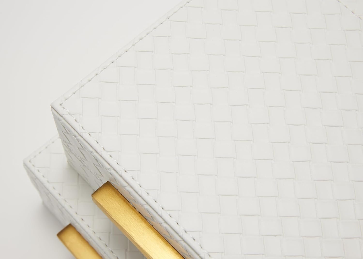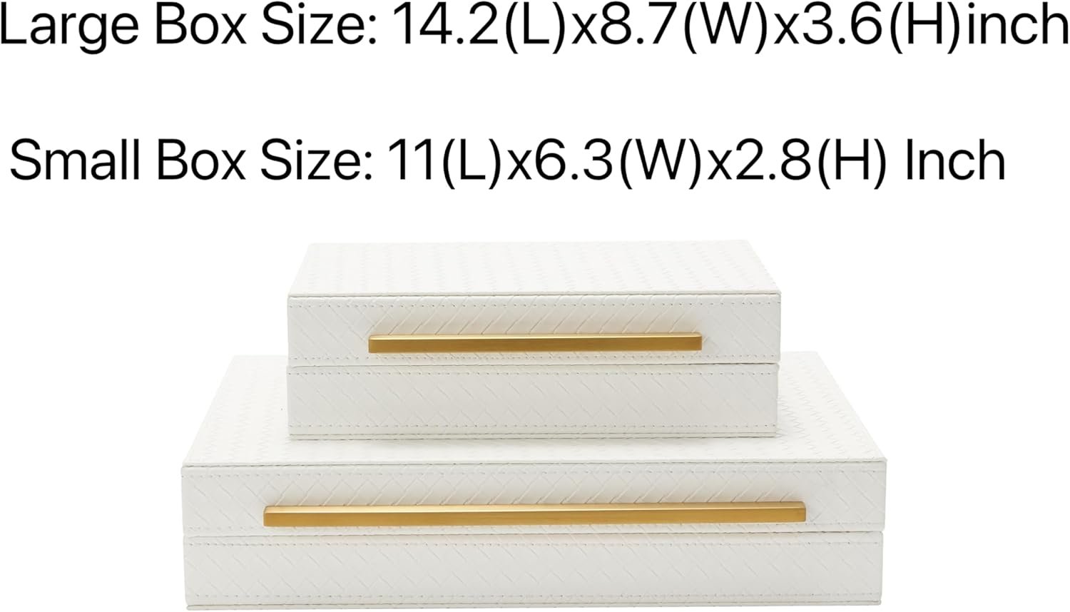 Stylish and Elegant Design ! This eye-catching decorative box boasts and elegant blend of white and gold, a unique brushed gold metal handle for effortless opening and closing. It is Beautiful and Modern home decor wherever you put it on the coffee table, side table, console table, night stand, shelf, book case, barthroom.2pcs of pack can be stacked piece by piece on your book shelf or console table or any other placed your liked.