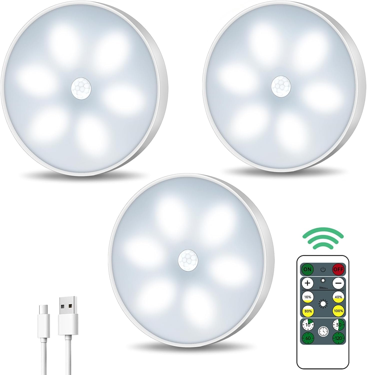 13 reviews for LED Closet Lights Wireless Motion Sensor Step Lights, USB Rechargeable Battery Operated Puck Lights with Remote, Dimmable Under Cabinet Lighting for Counter, Kitchen, Stairs (3 Pack)