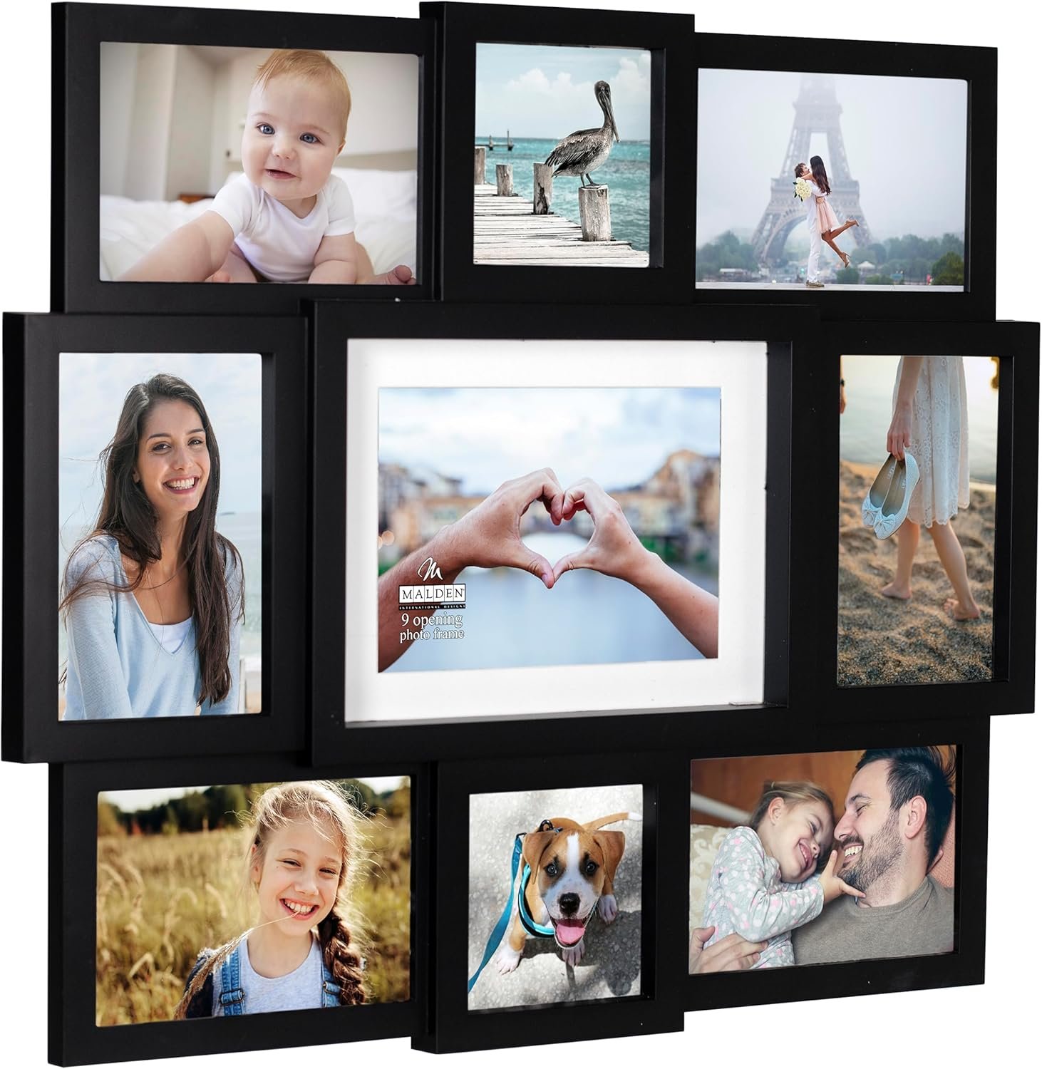 Malden 9-Opening Collage Frame, Made to Display One (1) 5″ x 7″, Two (2) 4″ x 4″ and Six (6) 4″ x 6″ Pictures, Black