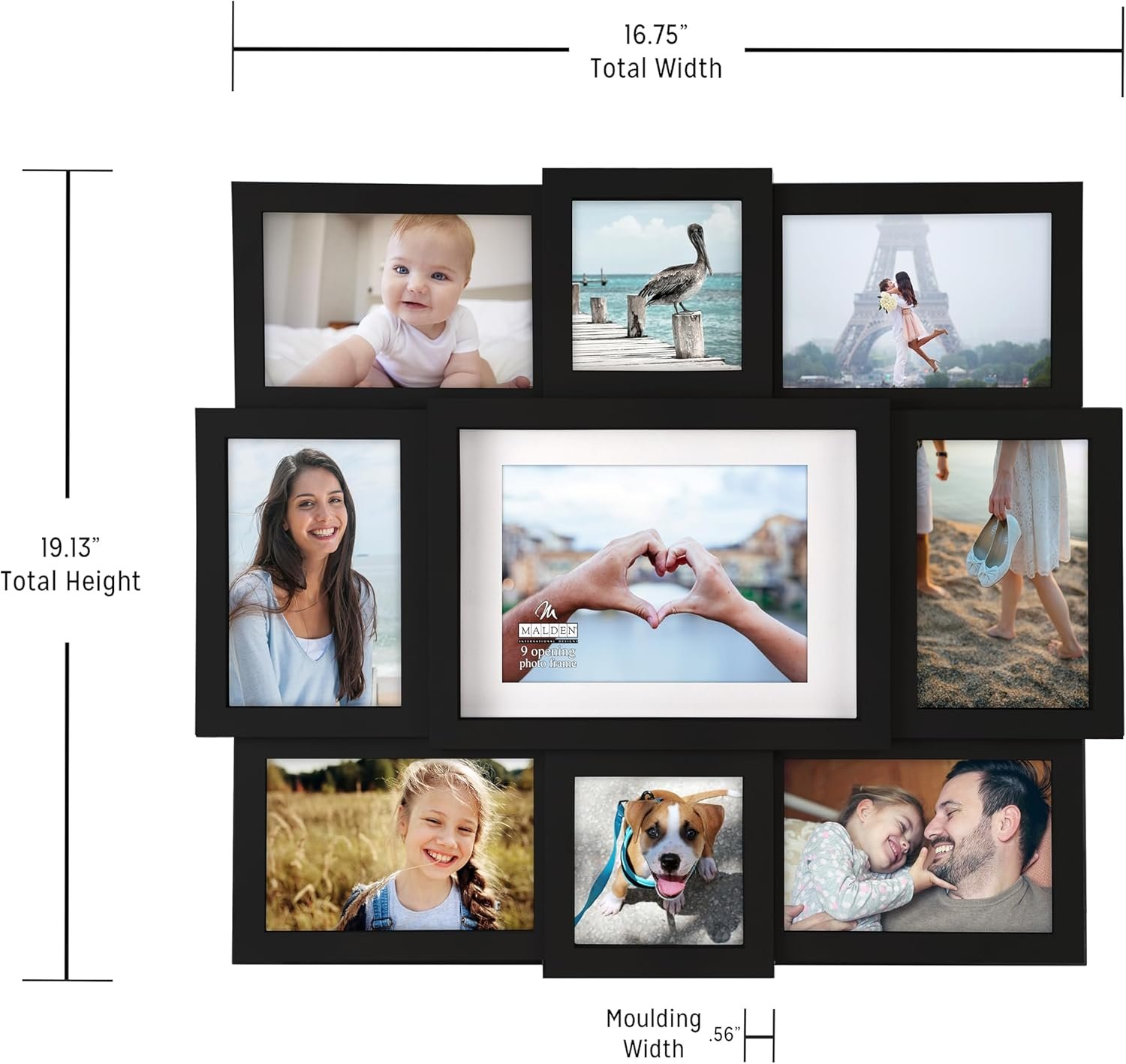 13 reviews for Malden 9-Opening Collage Frame, Made to Display One (1) 5″ x 7″, Two (2) 4″ x 4″ and Six (6) 4″ x 6″ Pictures, Black
