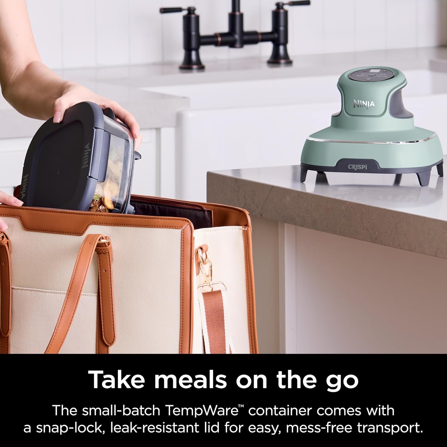 ALL-IN-ONE SYSTEM: Includes the Ninja Crispi PowerPod, 4-qt and 6-cup TempWare glass containers, and 2 storage lids.