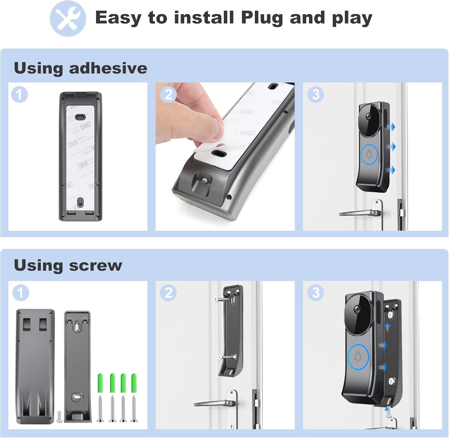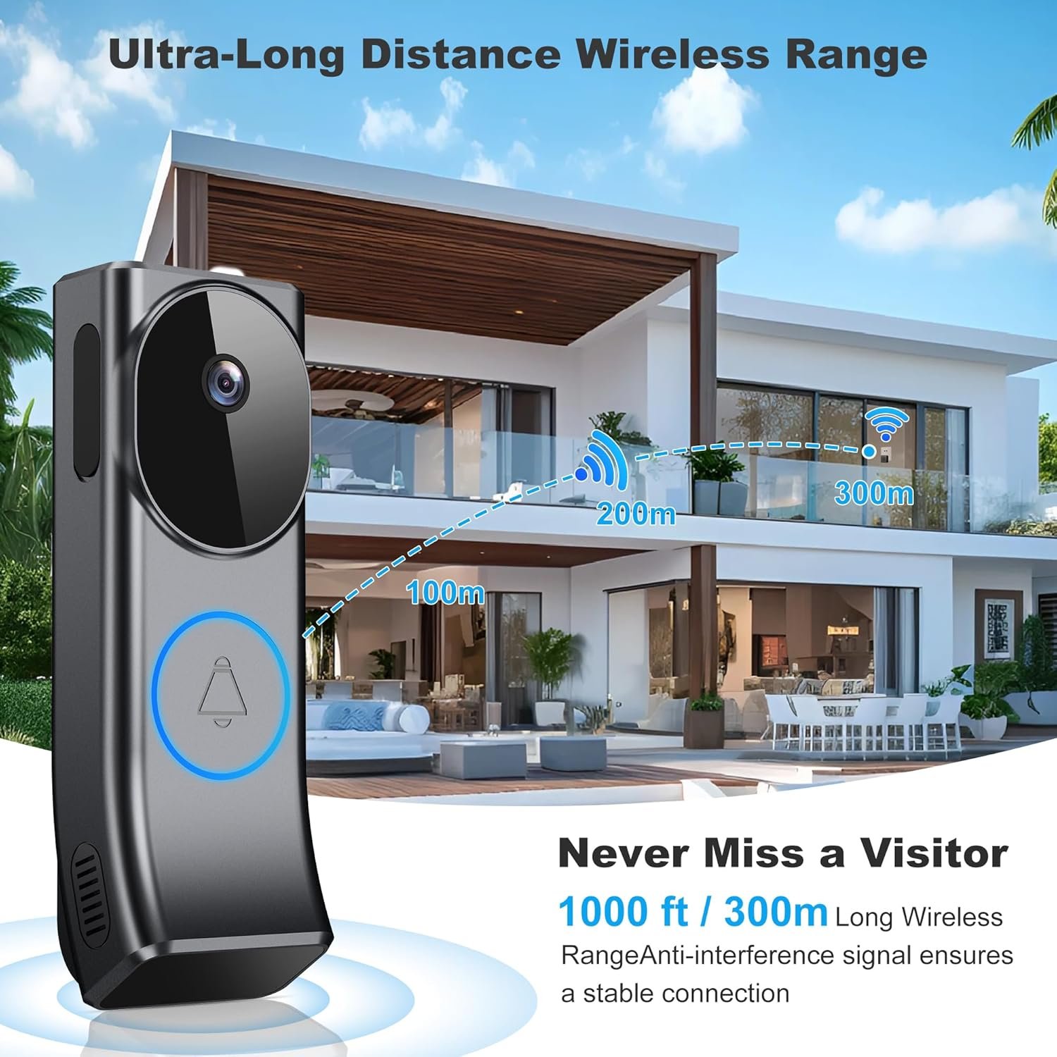 [Ultra-Long Wireless Range] Wifi Doorbell Camera Wireless Enjoy seamless coverage with a range of up to 1000 feet (300 meters), ensuring strong connectivity without interference, even in busy neighborhoods.
