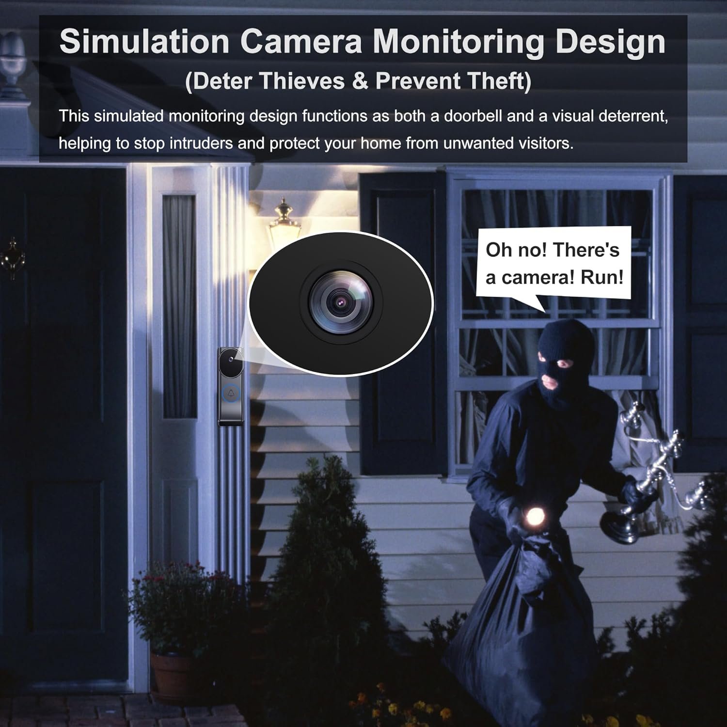 [Realistic Fake Camera & Anti-Theft Design]This smart doorbell wireless is a deterrent with its realistic fake camera, simulating a surveillance system to prevent theft and intrusions. Perfect for securing homes, offices, stores, and more.