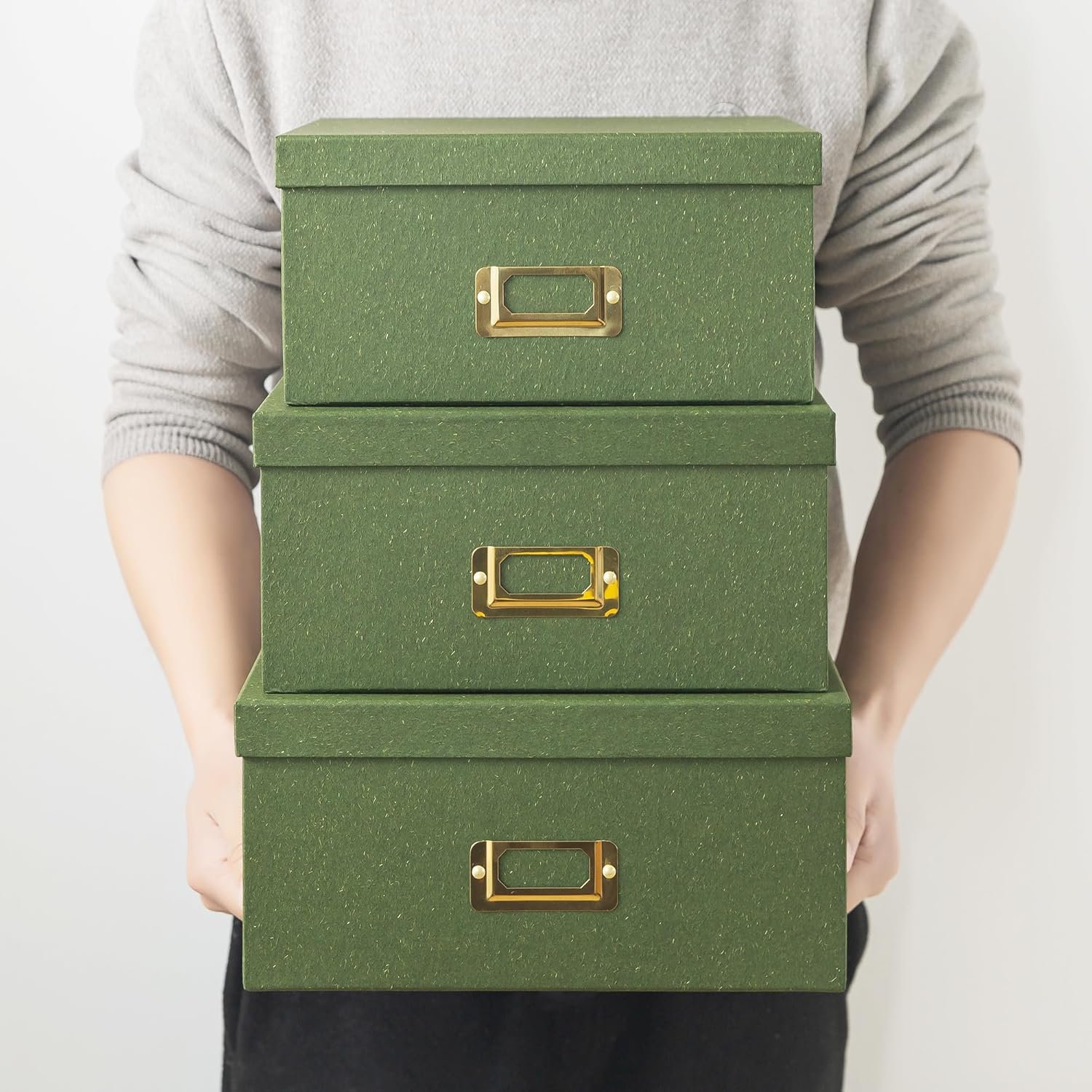 UNOBTRUSIVE ELEGANCE FOR ANY SPACE: The earthy green hue of these boxes is offset by a subtle texture, ensuring they assimilate seamlessly into a variety of decor styles. Whether you’re aiming to minimize clutter or store your belongings discreetly, these boxes offer a storage solution that is as understated as it is elegant.
