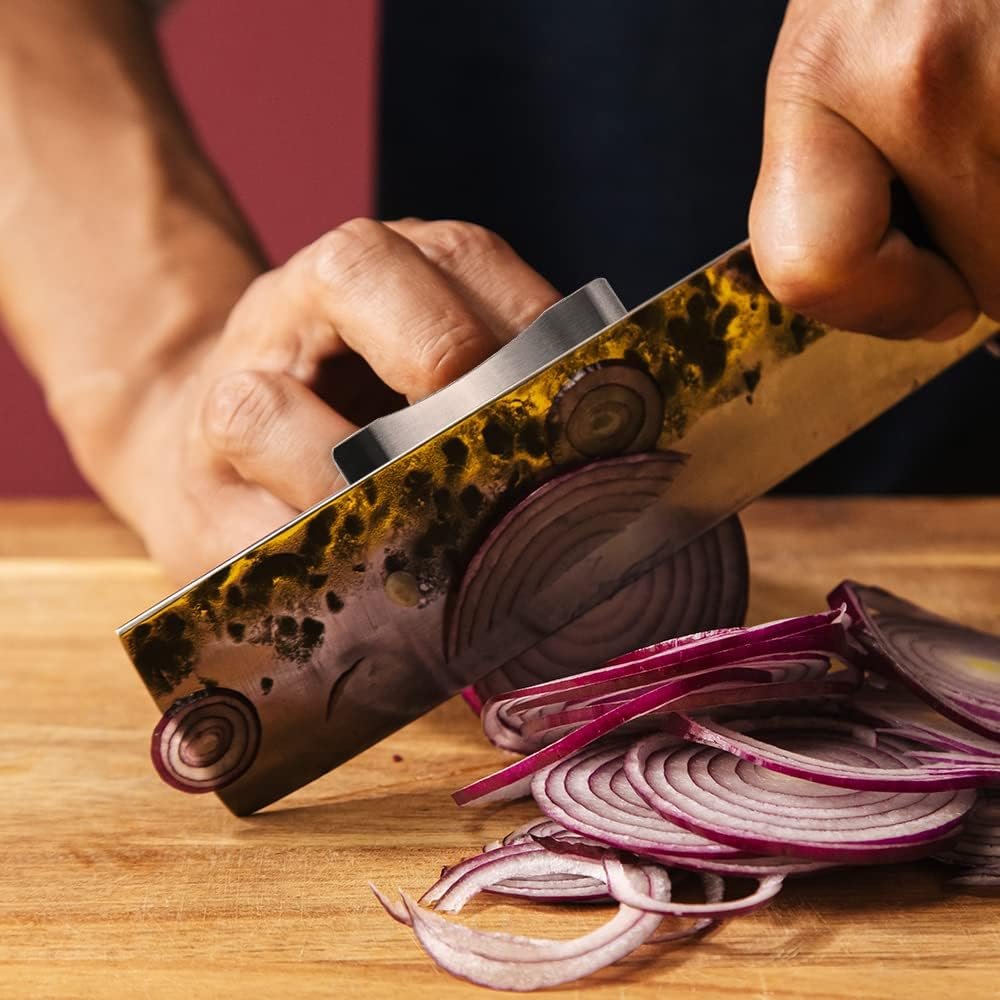 My nephew loves to experiment in the kitchen, so he’s constantly chopping up something. I got this for him and he loves it. He said he was nicking his nails when he chopped at times, but this has helped with the problem, and it is easy to hold as you chop away.
