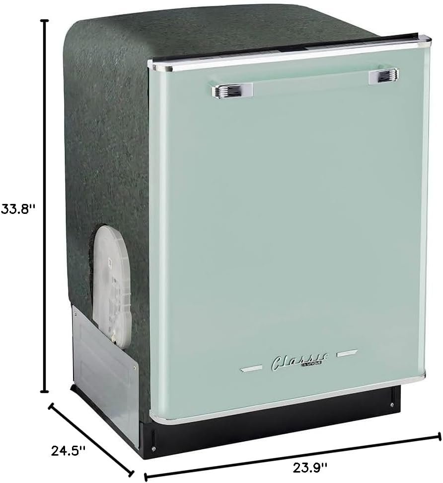 The 24” Unique Classic Retro Undercounter Dishwasher transports you back to the ‘50s with its iconic retro design and chrome finished accents. Extremely quiet Unique dishwasher allows for continued cleaning while entertaining. Multiple wash cycles make clean-up easy for any small or large task!