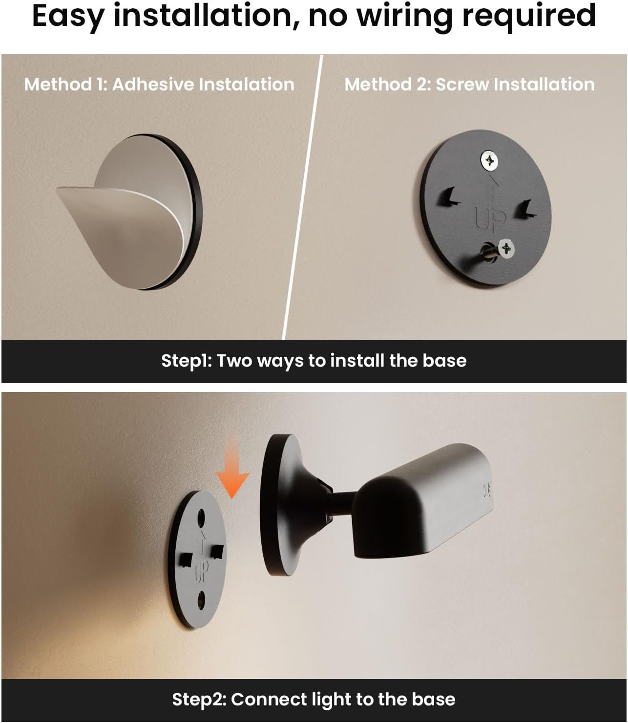 Easy Installation : Our cordless wall lamp offers two installation methods: adhesive mounting or screw mounting. Simply follow the product manual to easily complete the installation process, making it a hassle-free addition to your space.