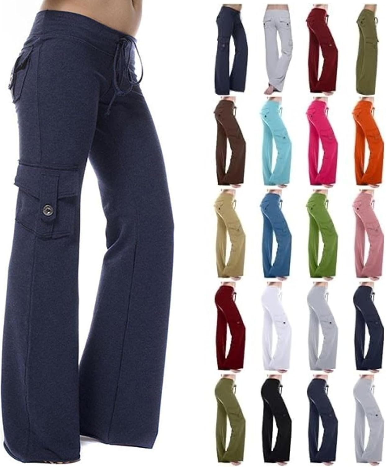 Womens Cargo Pants with Pockets Wide Leg Yoga Pants Elastic Waist Flared Pants